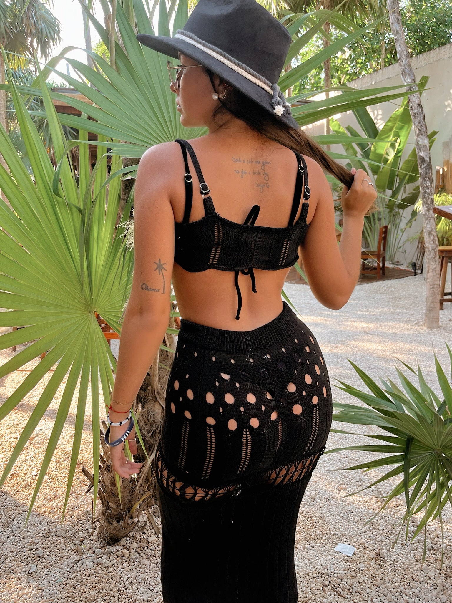 Set Negro perfecto para tus vacaciones en la playa, la talla queda bien a una S y M. (NO incluye bikini)