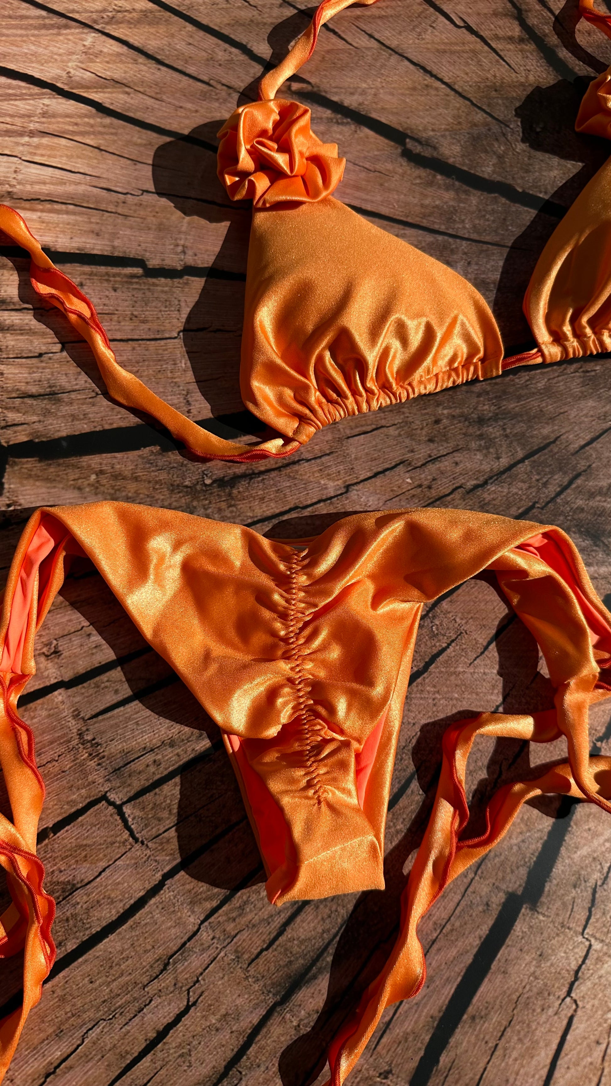 Con el color del atardecer, llega “Caribe sunset” en su versión triángulo, las tallas corren normal. Sus tiras de amarrar son onduladas simulando lo wavy del mar. Cada detalle es inspirado en nuestro bello Caribe.