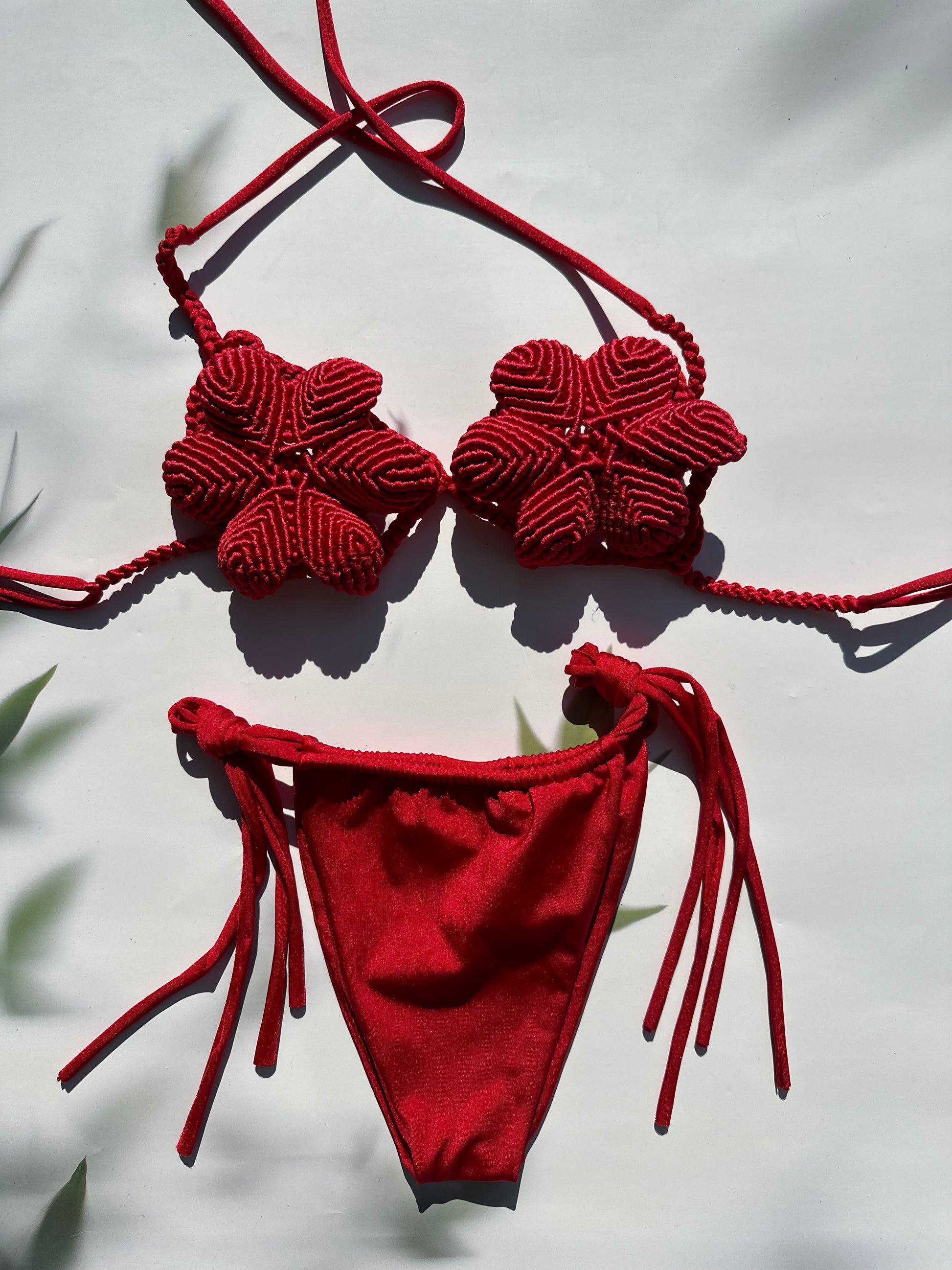 Un Re-Edition de nuestro bikini “Florecita” Flor mas gruesa y con mas soporte, incluye un forro de mesh para que te sientas mas cómoda, si no, aviéntalo y lúcelo sin forro que se ve espectacular!! Panty de amarrar. Las tallas corren bien!