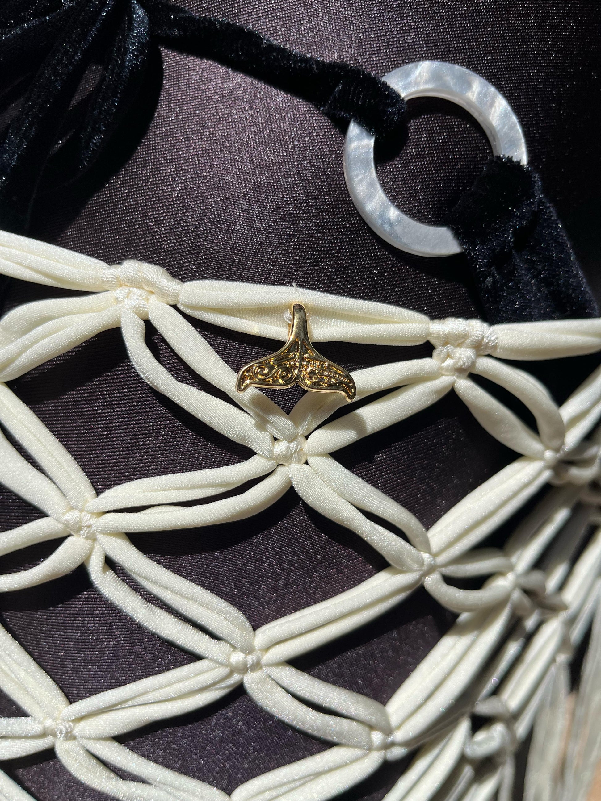 Pareo tejido en técnica macramé, con un charm de detalle de cola de sirena simulando nuestro logo, amarás !! 😍