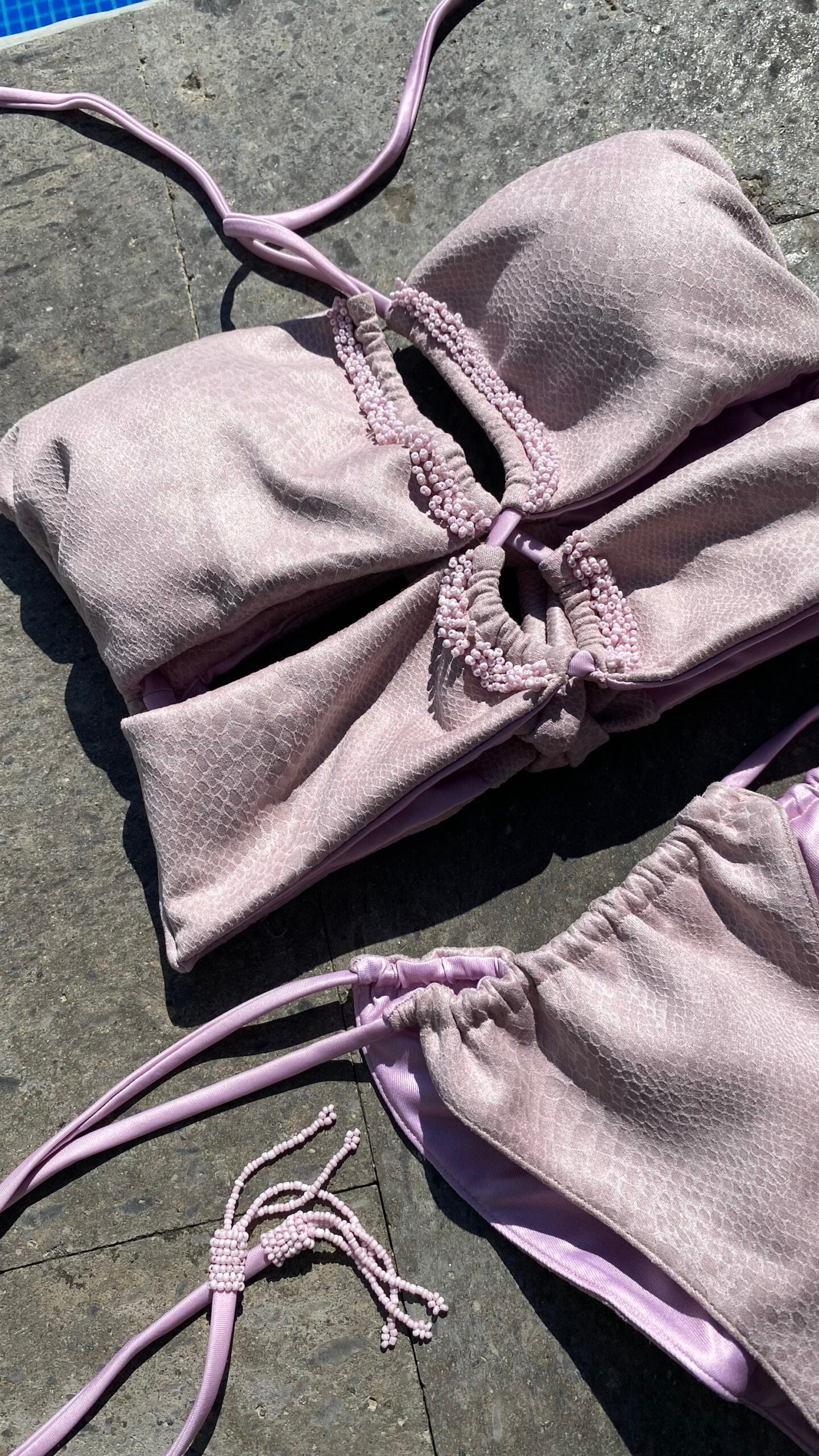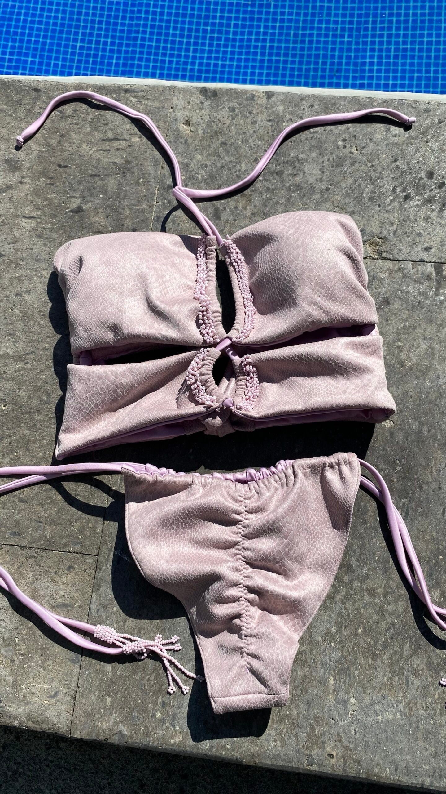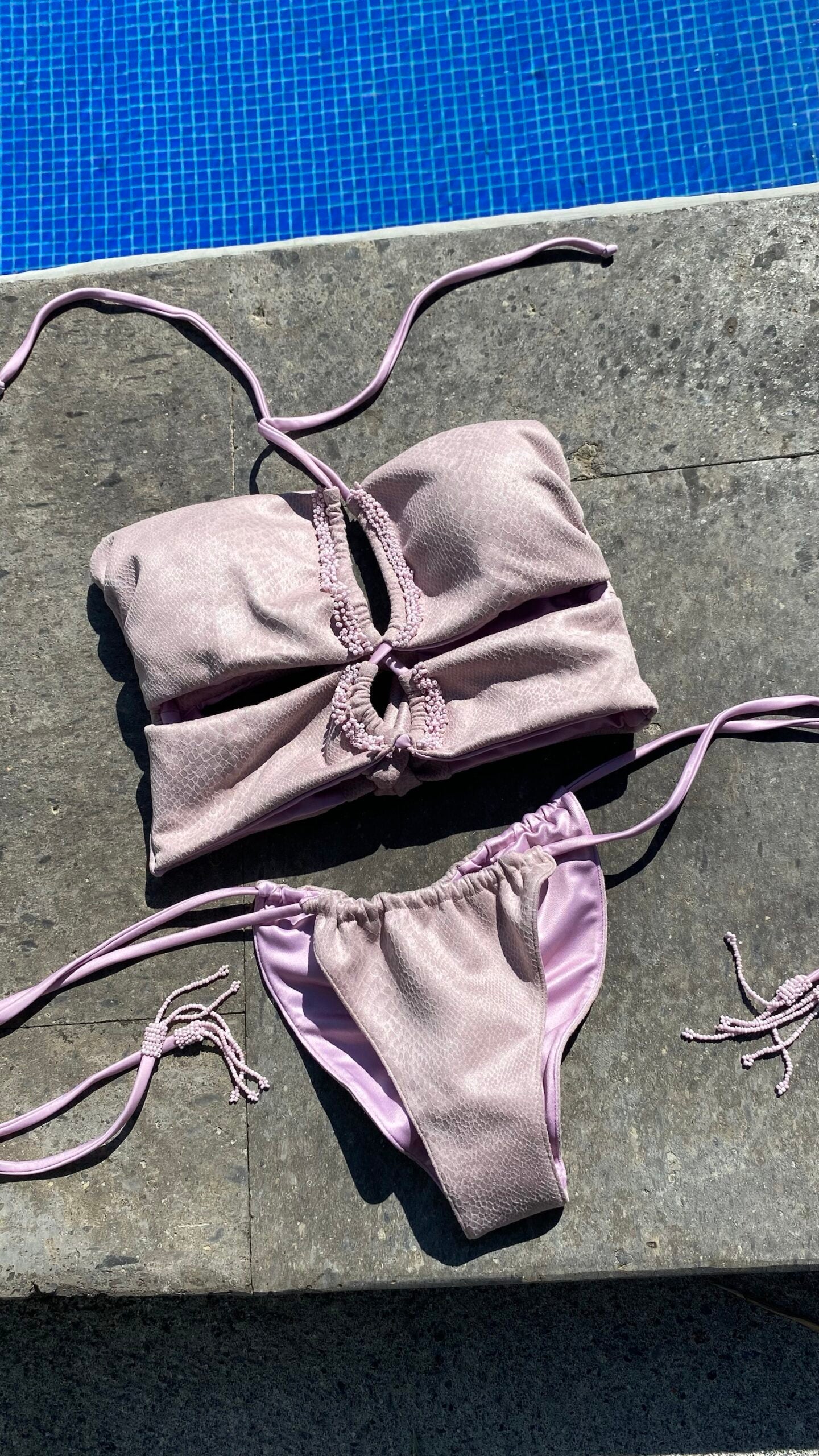 Tiras ajustables de amarrar por la espalda. Sutil bordado a mano. Panty corredizo con tiras ajustables.