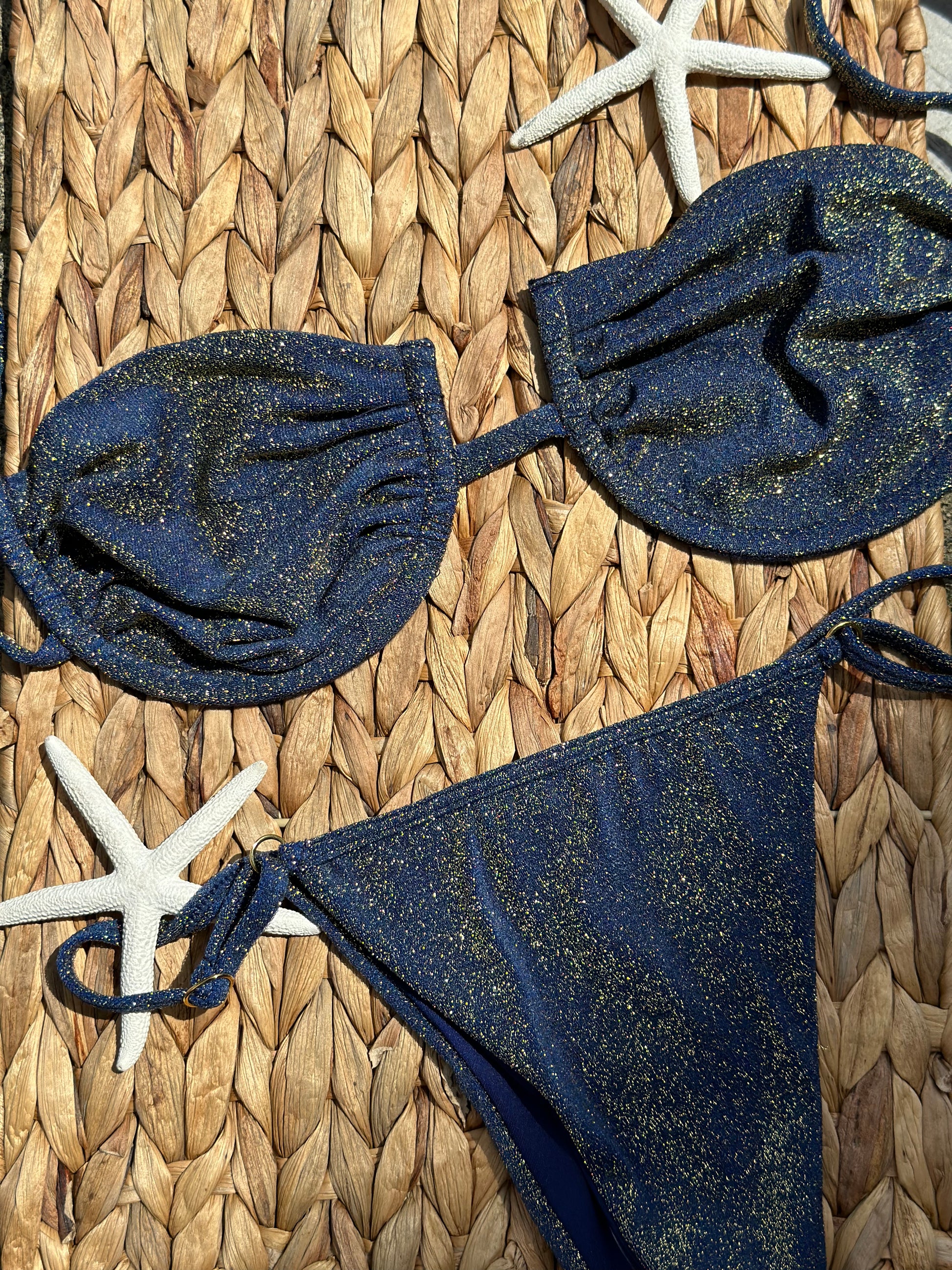 MODELO USA TALLA S. Top con Varilla y tirantes de graduar. Telas importadas de alta calidad y brillosas. Panty con tiras de graduar a los lados. Panty sin plisar de las pompas. Las tallas corren bien, brilla hermoso en el sol.